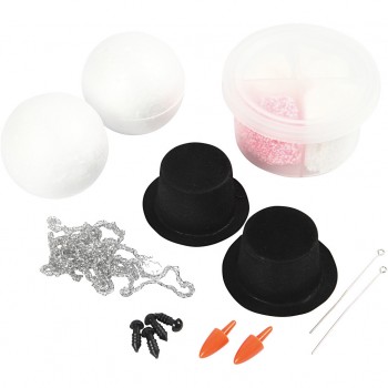 Contenido: 2 Foam Clay con purpurina. Incluye bolas poliestireno, ojos, narices, sombreros, cordel para colgar