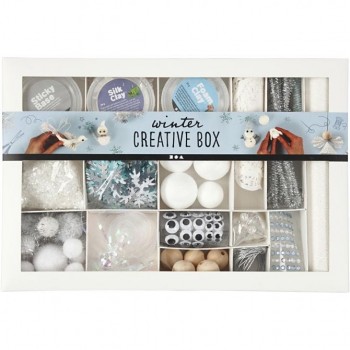 Caja creativa en tonos blancos.