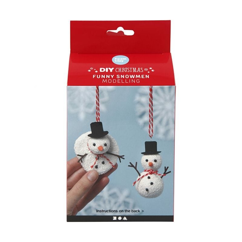 Contenido: 2 Foam Clay con purpurina. Incluye bolas poliestireno, ojos, narices, sombreros, cordel para colgar