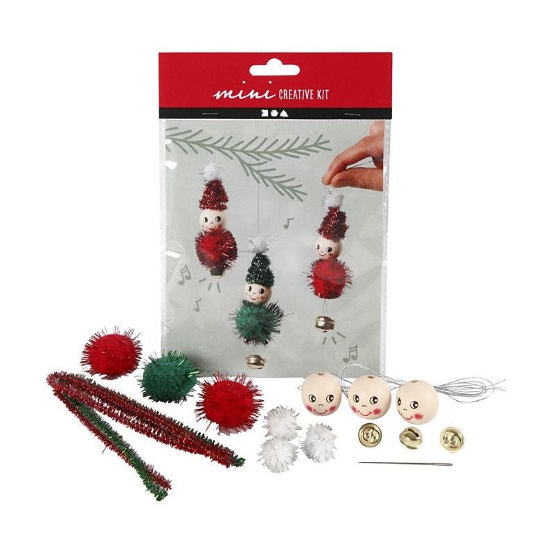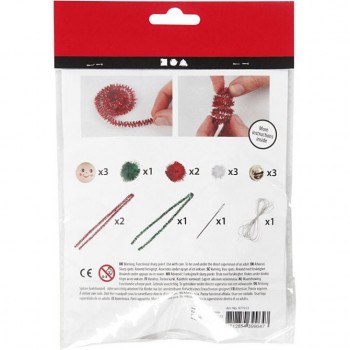 Contenido: Chenilla de metal, pompones de metal, cabezas de algodón, campanas, aguja y cuerda para colgar