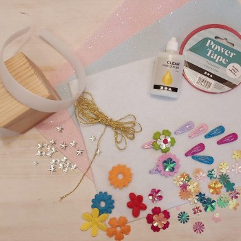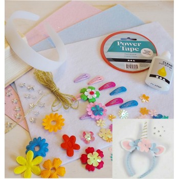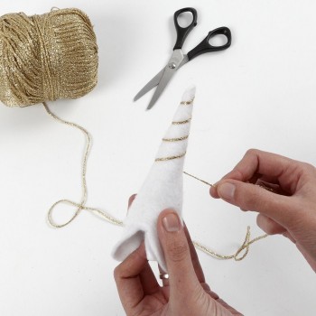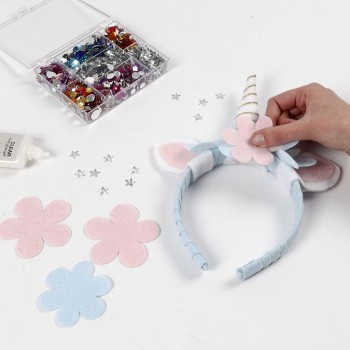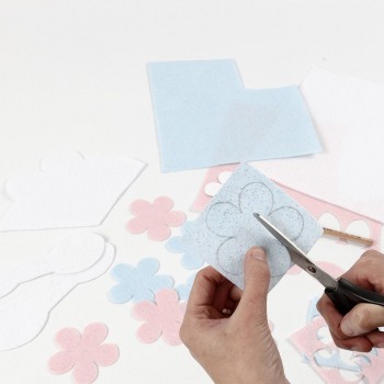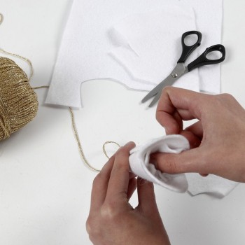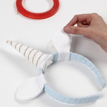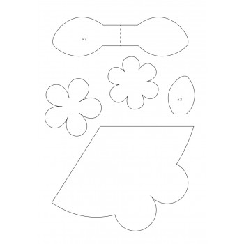 Recorta todas las partes y cópialas en fieltro de colores. Ahora corta un cuerno, flores y orejas en el fieltro.