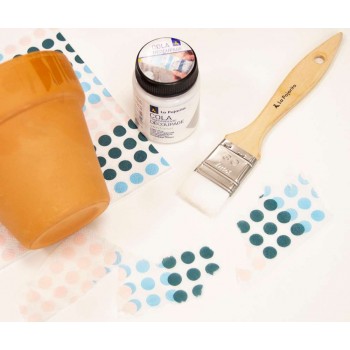 La Cola Decoupage permite pegar, sellar y barnizar impresiones sobre superficies como la madera, el yeso o cartón con resultados excelentes. Perfecta tanto para superficies lisas como para las porosas. Una vez seca, es completamente transparente, no deja halos y presenta un acabado brillante.