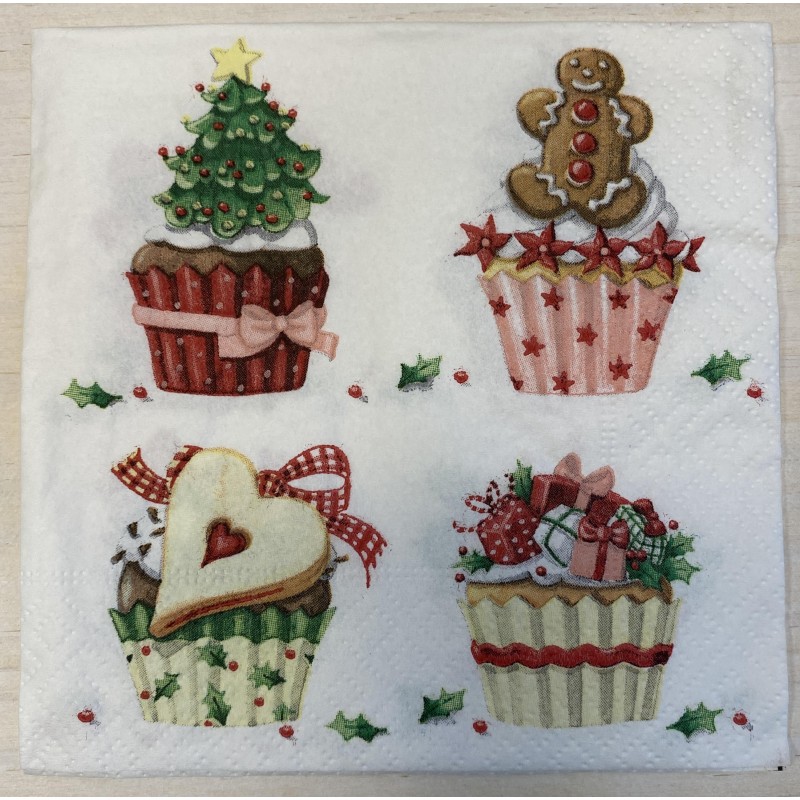 SERVILLETA CUPCAKES NAVIDAD COCTEL