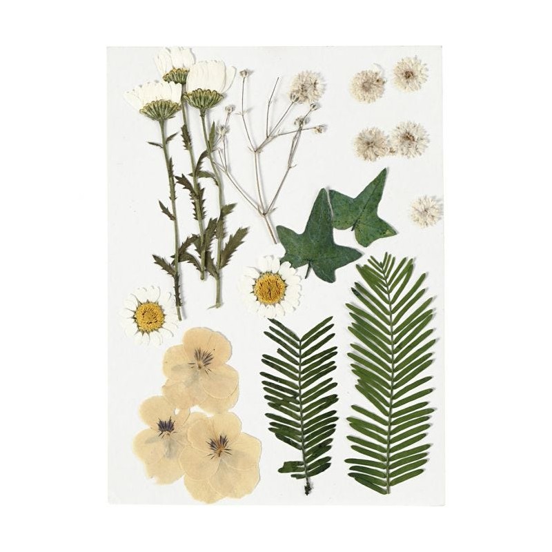 Flores y hojas genuinas, prensadas y secas para decorar tarjetas, cajas y similares Fáciles de instalar con pegamento universal