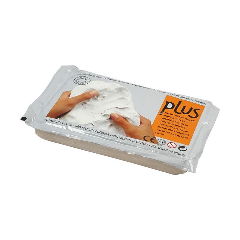Una solución de arcilla de modelado natural flexible que no requiere fuego en un horno. Una vez seca, se puede pintar con la pintura artesanal Plus Color