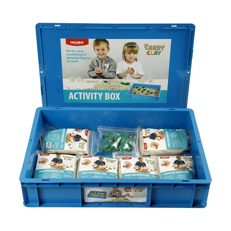 Contiene: 6 kg de Sandy Clay®, 10 moldes - viene en una práctica caja con tapa