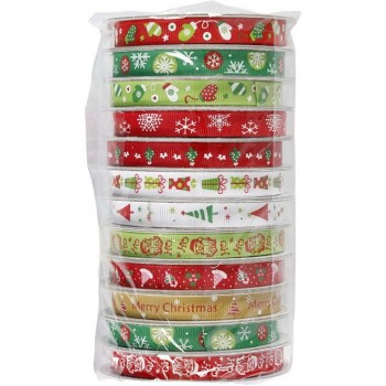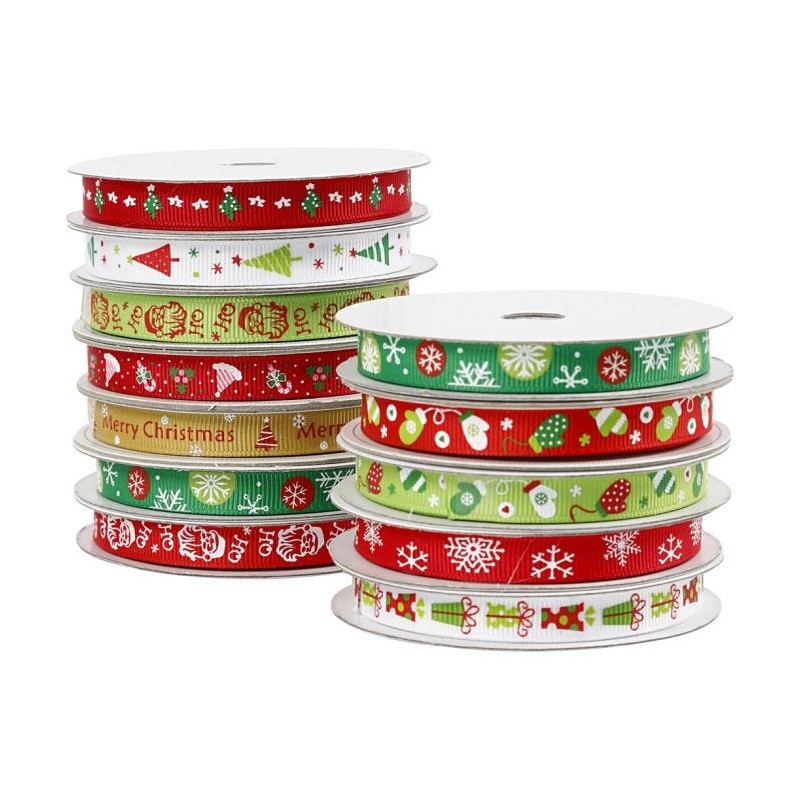 Cinta decorativa de poliéster con motivos navideños. Ideal para decoración o para colgar. Espalda lisa.