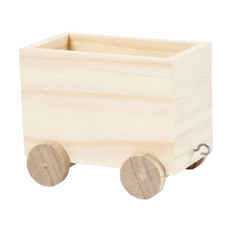 Pequeño vagón de madera clara con gancho/ojo para acoplar a otros vagones (apto para el tren 57977). Decora el vagón de una variedad de formas creativas y da el aspecto que quieras.