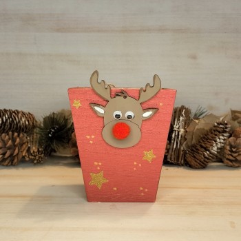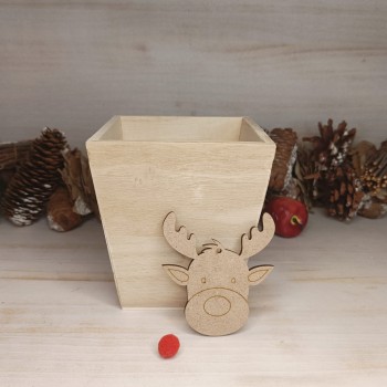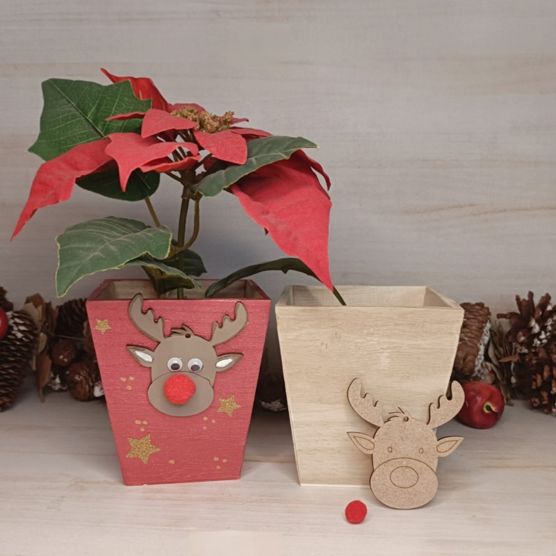 Macetero de madera recto con silueta premarcada reno (consultar, si hay preferencia de otra silueta diferente)
