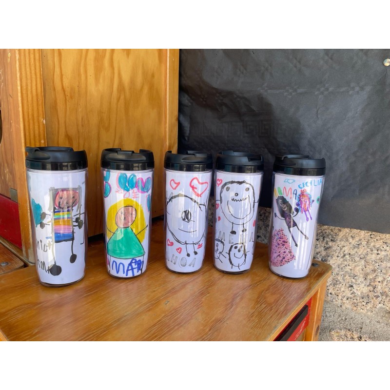 Tazas térmicas transparentes inteligentes con tapas e insertos extraíbles. Separe la taza, coloque dibujos, fotografías o collages en la parte transparente y vuelva a juntarla. Tazas inusuales y personalizadas para café, té, agua, etc