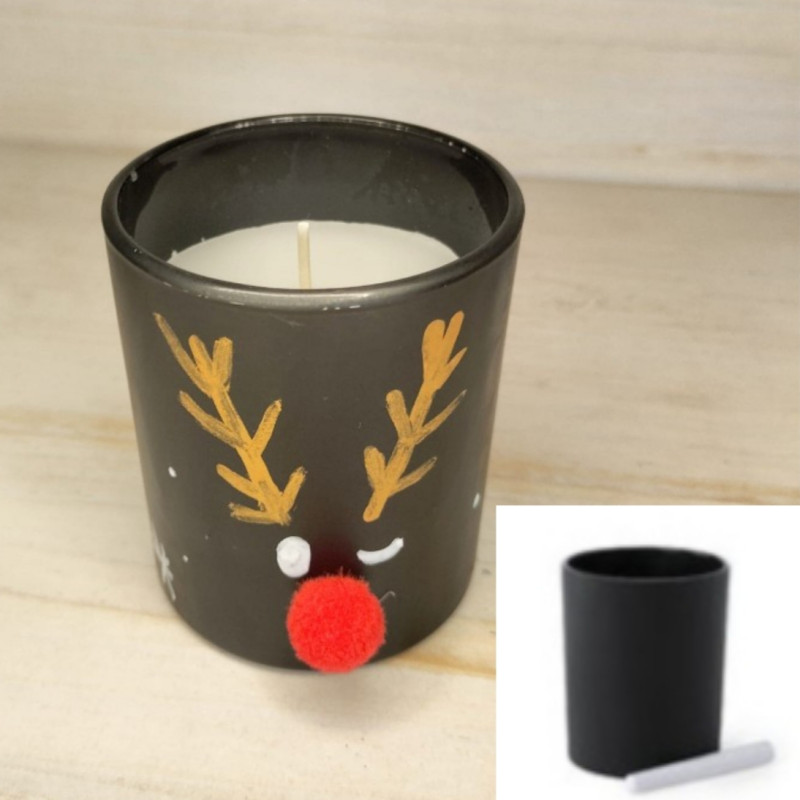 Vela aromática de fragancia vainilla presentada en original tarro pizarra para decorar. Tiza incluida y presentada en caja individual eco.