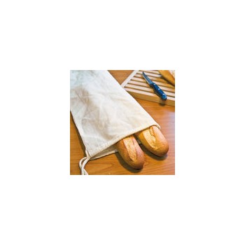 Bolsa tipo pan en material 100% algodón natural con cierre de cordón a juego. Acabado cosido.