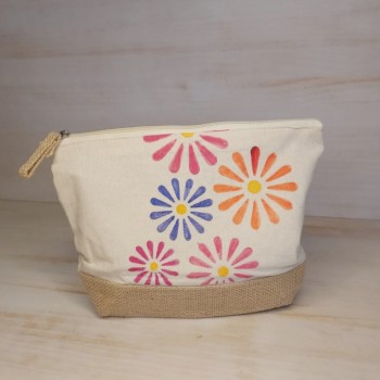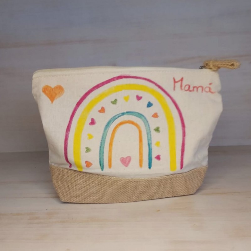 Neceser de línea nature en combinación de yute laminado y algodón natural. Con cierre de cremallera y tirador en yute a juego.