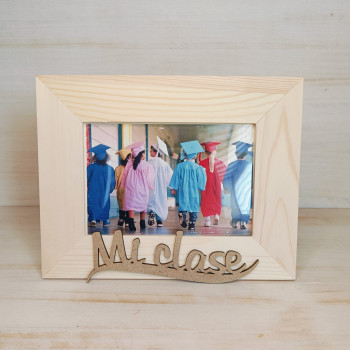 Porta foto de madera y "Mi clase"