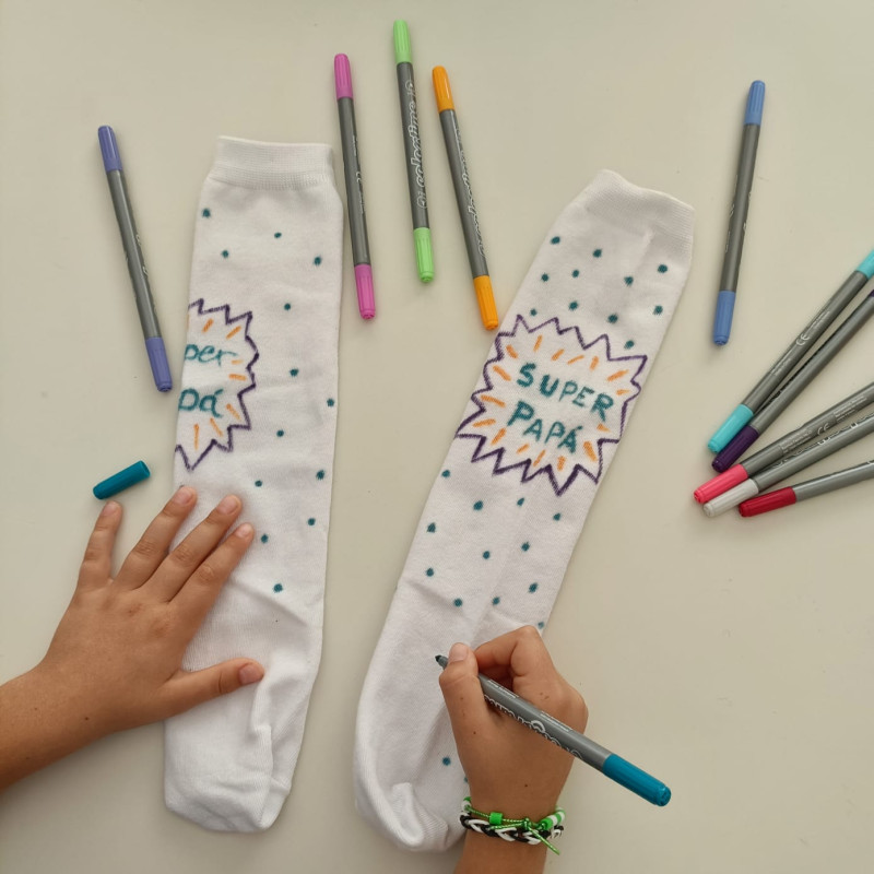 Par de calcetines fabricados en poliéster blanco, perfectos para pintar con rotuladores de tela.