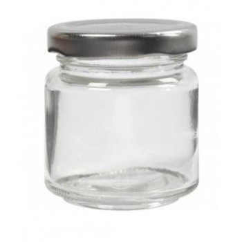 Bote de cristal con tapa de metal plateado a rosca.