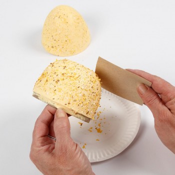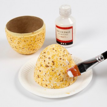 Huevo heho a mano, dos piezas de papel maché con interior de plástico para estabilizar.Ficha técnica