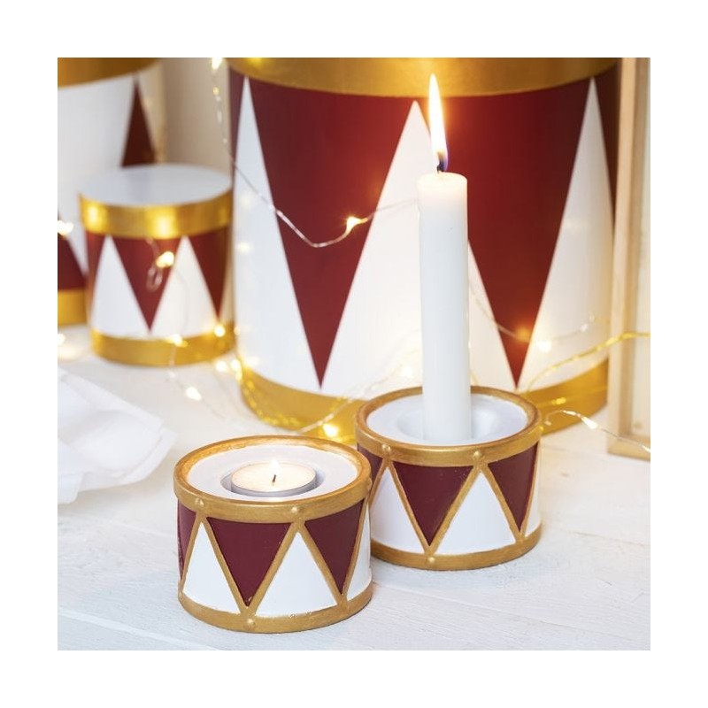 Tambor de terracota sin tratar con agujero para colocar velas normales o calientaplatos.