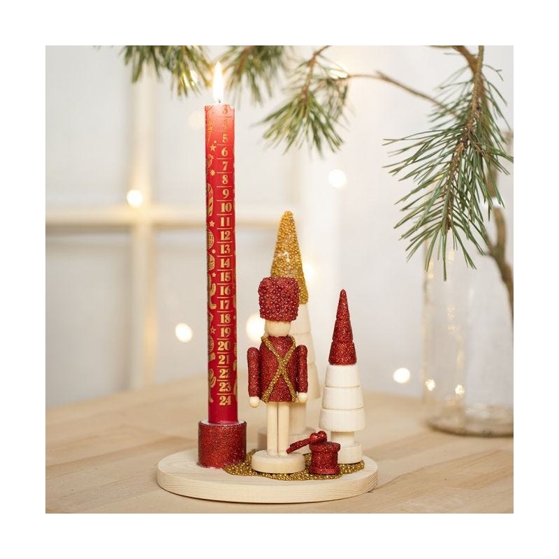 Soporte para luz de vela en madera clara con inserto de metal para velas normales. Adecuado para decoración.