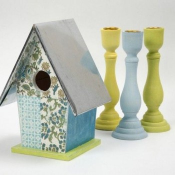 Candelabro de madera con portavelas metálico para velas normales.