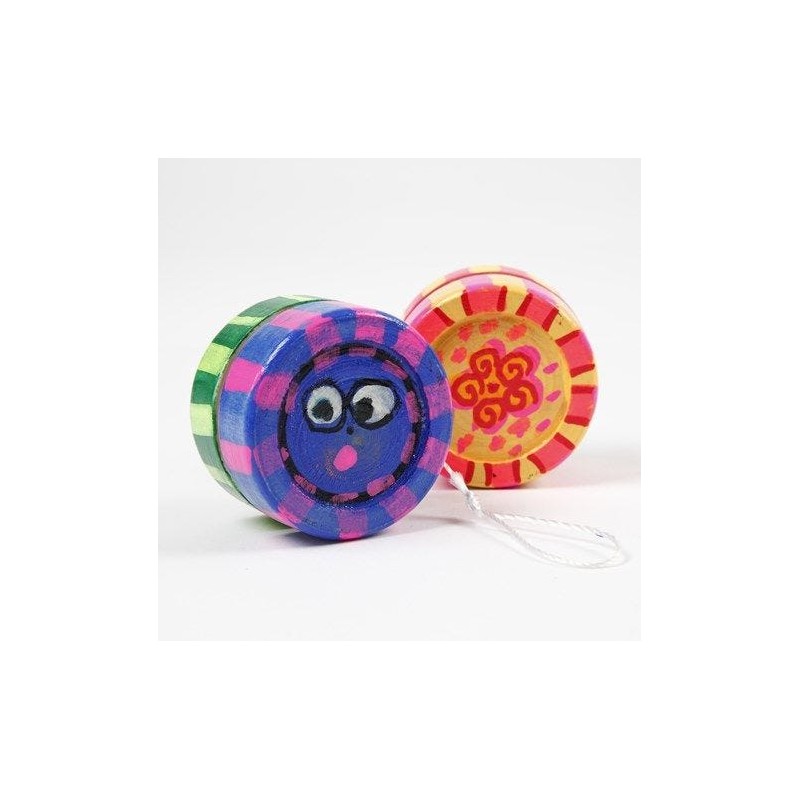 Yo-Yo de madera con cuerda central. Fácil de decorar la parte central.