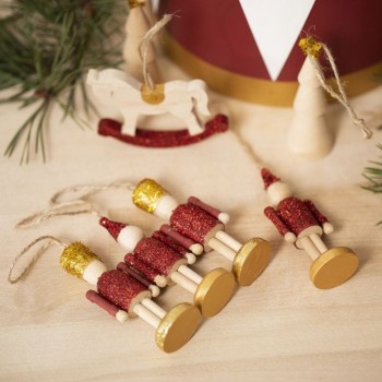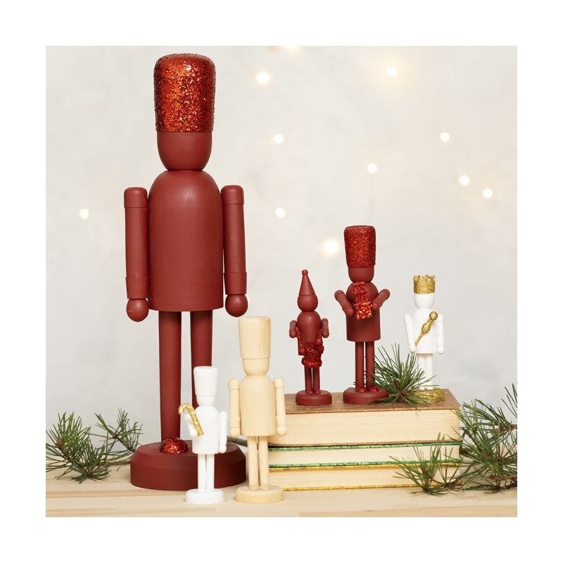 Figura en madera brillante con bonitos detalles y brazos móviles Montado en una base de manera que la figura se mantiene de pie.Ficha técnica