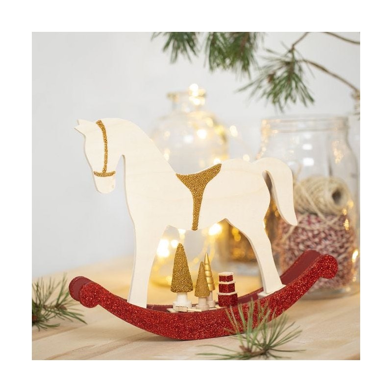 Nostálgico caballo balancín en madera clara con finos detalles La figura se puede colocar libremente en el pie que consta de núcleos dobles.Ficha técnica