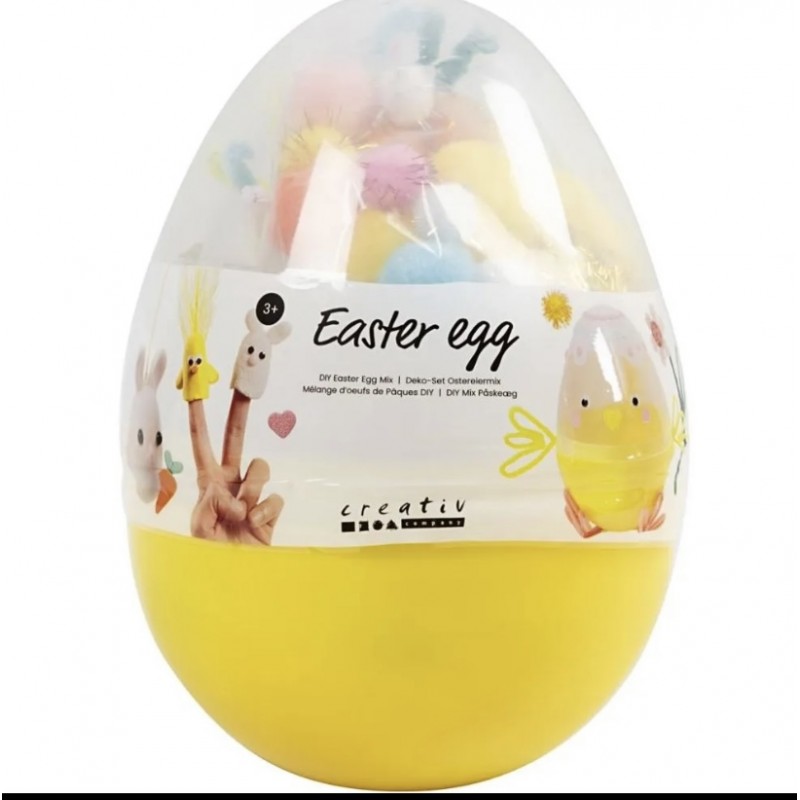 Contenido: huevos de poliestireno, Silk Clay®, Foam Clay®, cuentas tubulares, tablero de clavijas, plumas artificiales, figuras de espuma EVA, ojos móviles, ojos de plástico, huesos de pollo de plástico, pompones, limpiapipas, alfileres y cuerda.